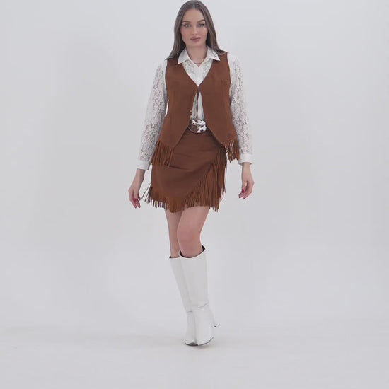 Dakota Özel Tasarım Püsküllü Yelek & Şort Etek Takım